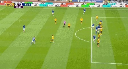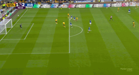 第79分钟,沃尔费传中,罗德里戈-戈麦斯抢前点推射破门,狼队2-3埃弗顿