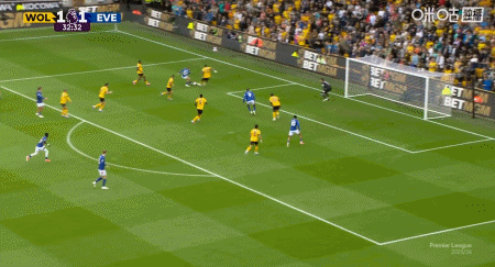 第33分钟,霍尔横传,恩迪亚耶后点破门,埃弗顿2-1狼队