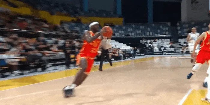 第二节比赛中,桑普森接赵嘉仁传球,起三步隔扣李安打成二加一。