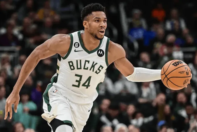 雄鹿球员扬尼斯-阿德托昆博半场5投2中,罚球4中4得到8分7篮板5助攻。